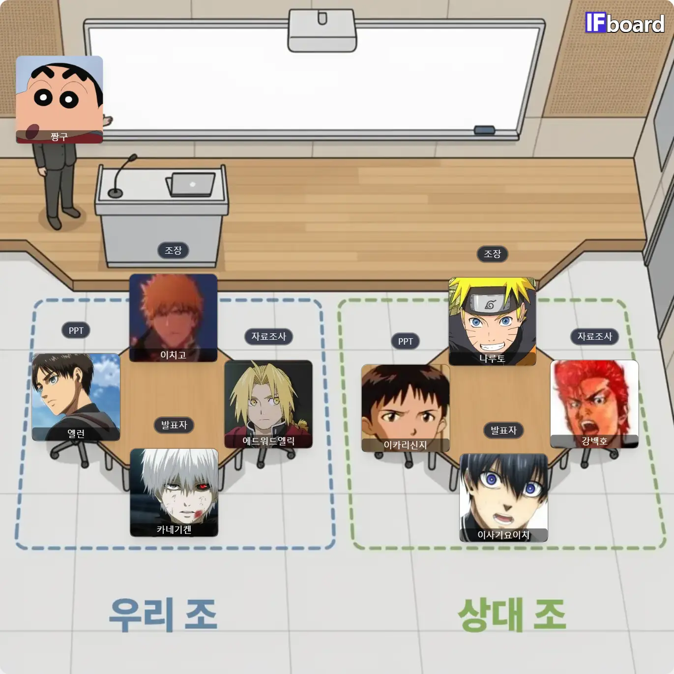 이거지 일단 상대 조는 조장이 신지라서 갈팡질팡 개스트레스 짱구가 발표하는 거에서 끝ㅋㅋㅋㅋㅋㅋㅋㅋㅋㅋ
