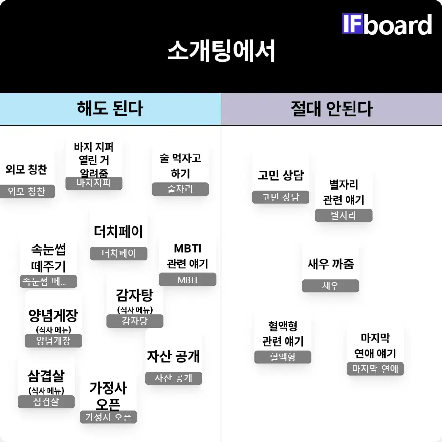 썸단계에서 가능하거나 혹은 불가능한 것들(사귄 후에 가능) 등을 분류해보자