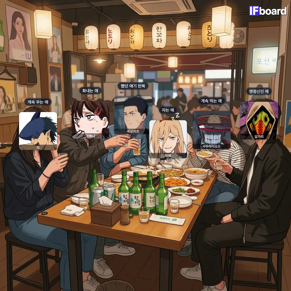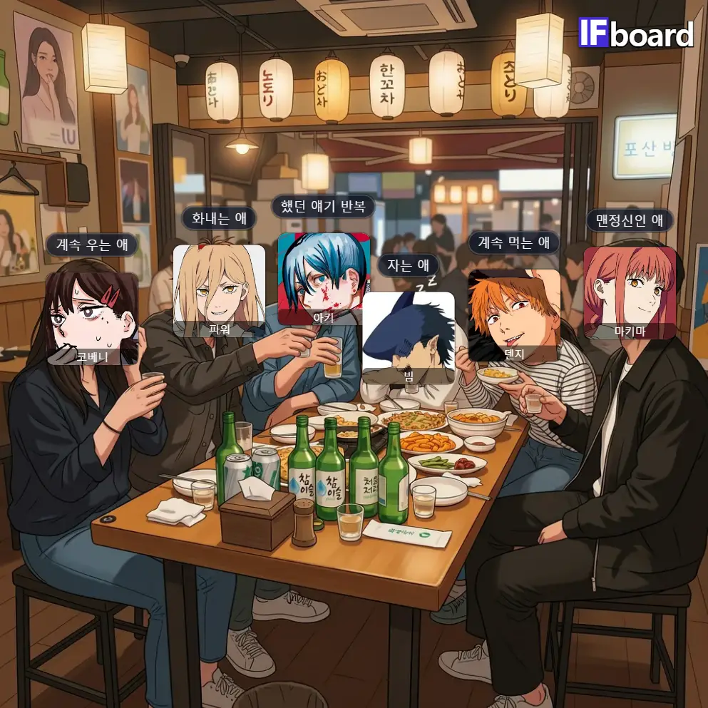 체인소맨 캐릭터 술자리 유형 배치하기